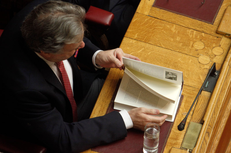 Στο διάβασμα το έριξε ο υπουργός Εργασίας Γιώργος Κατρούγκαλος κατά τη διάρκεια της συζήτησης επί του πολυνομοσχεδίου στη βουλή. Ο φωτογραφικός φακός τον εντόπισε να ξεφυλίζει το βιβλίο του Ζακ Ζιλιάρ «Οι Αριστερές της Γαλλίας».