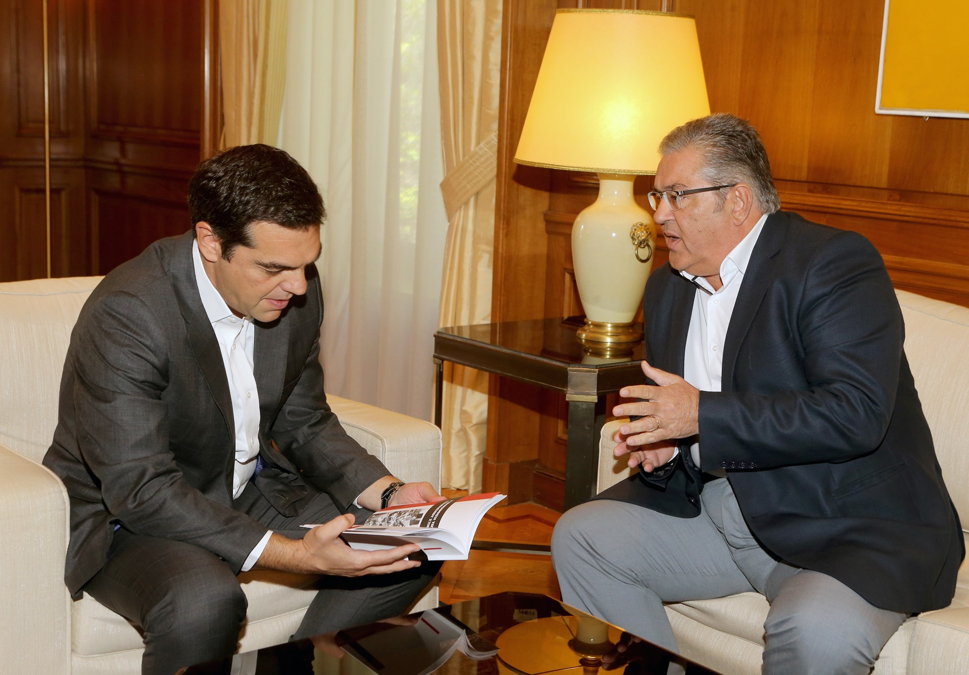 Ο Δημήτρης Κουτσούμπας συναντήθηκε με τον Πρωθυπουργό στο πλαίσιο των επαφών του Αλέξη Τσίπρα με τους πολιτικούς αρχηγούς προκειμένου να τους ενημερώσει για τα αποτελέσματα του Eurogroup και τις εξελίξεις στο Κυπριακό.