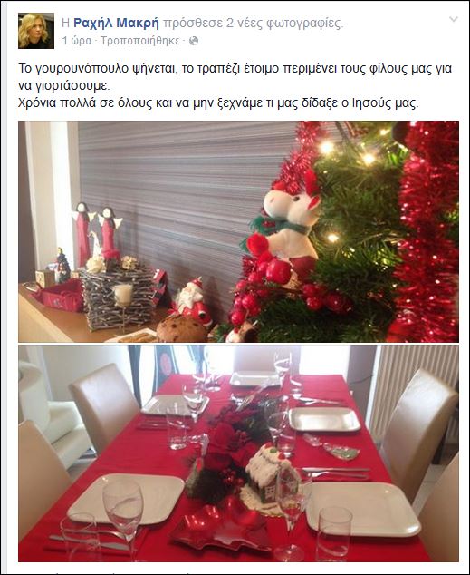 Η Ραχήλ Μακρή με ανάρτησή της στην προσωπική της σελίδα στο Facebook έκανε γνωστό το… μενού που θα έχει το χριστουγεννιάτικο τραπέζι της.