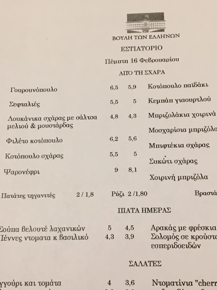 Το…μενού της Βουλής για την Τσικνοπέμπτη