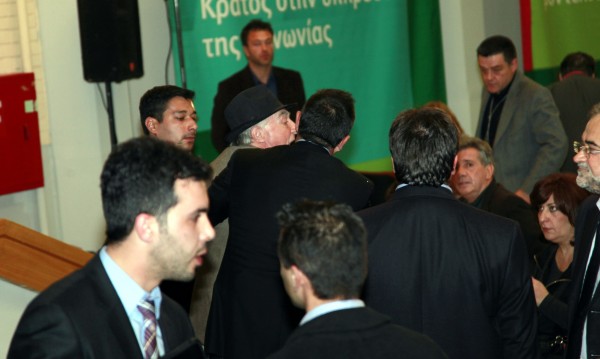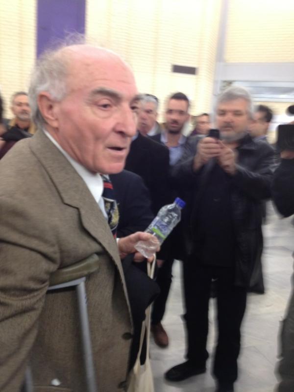 Ο ηλικιωμένος με την πατερίτσα που πέταξε γιαούρτι στον Ευάγγελο Βενιζέλο, βρίσκεται πεσμένος στο πάτωμα (η φωτογραφία από το Newpost). Δικαιολογημένα οι άνδρες της ασφάλειας του Αντιπροέδρου της Κυβέρνησης ανησύχησαν αλλά είναι υπερβολική η αντίδραση του πεσμένου άνδρα στον διάδρομο. Πως να τρέξει ο άνθρωπος να “ξεφύγει”,δεν βλέπετε ότι έχει πατερίτσα;