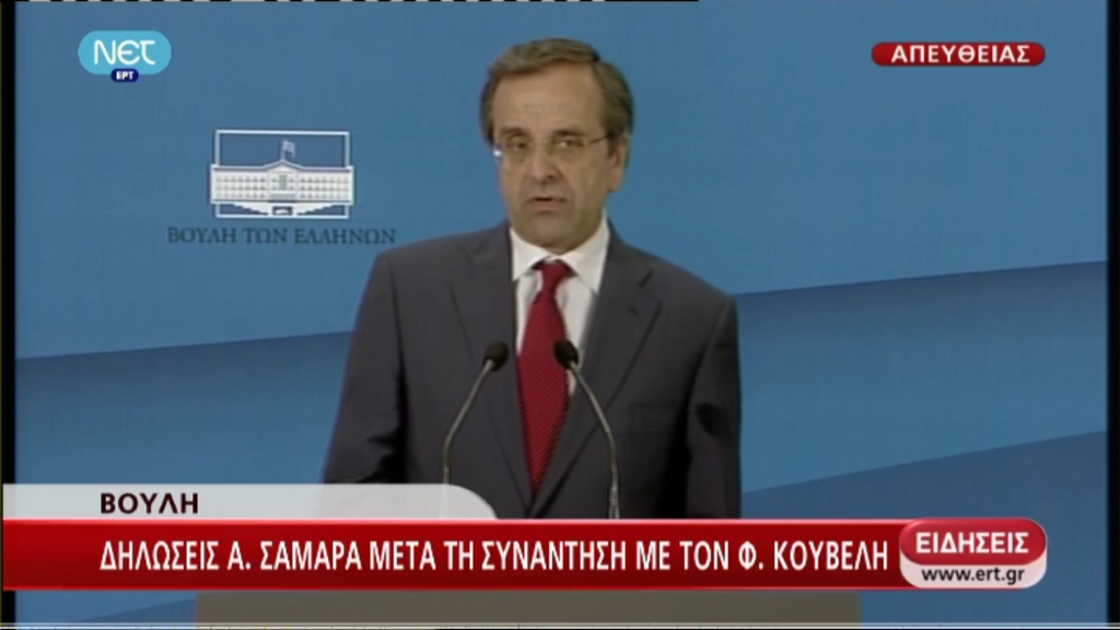 “Ήταν μία εποικοδομητική συνάντηση”, είπε ο Αντώνης Σαμαράς μετά τη συνάντηση με τον Φώτη Κουβέλη, τονίζοντας ότι η συζήτηση θα συνεχιστεί αύριο.