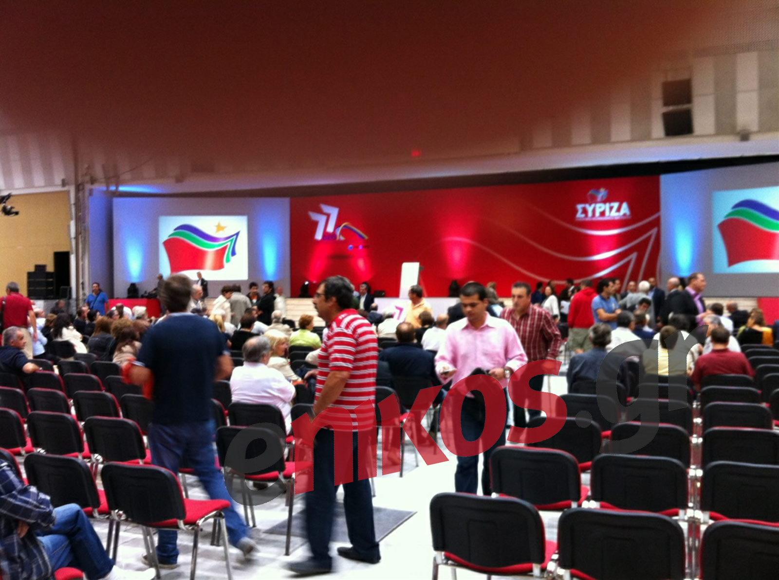 Επί ποδός βρίσκονται οι διοργανωτές για τις τελευταίες προετοιμασίες, πριν ανέβει στο βήμα του Βελλίδειου συνεδριακού κέντρου, ο Πρόεδρος του ΣΥΡΙΖΑ, Αλέξης Τσίπρας, για την ομιλία του στην 77η ΔΕΘ.