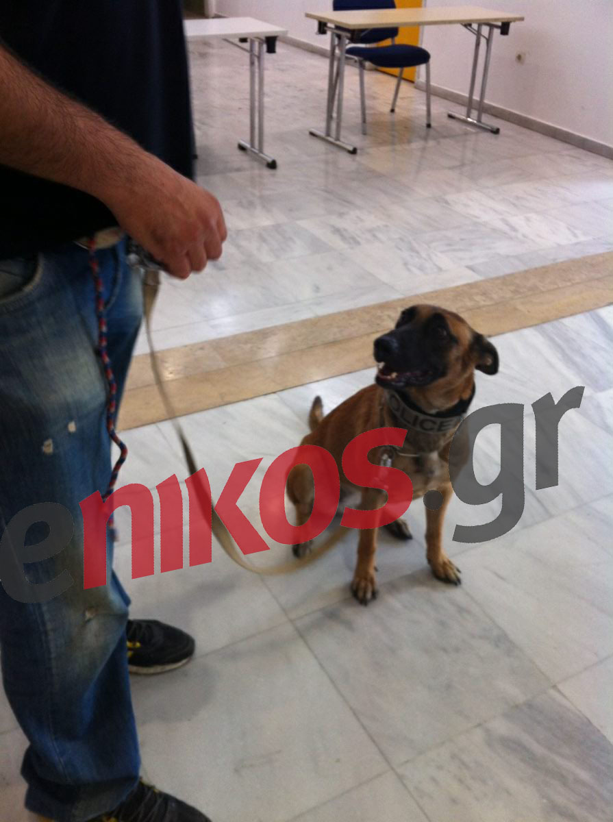 Μία ώρα πριν την προγραμματισμένη συνέντευξη Τύπου του προέδρου του ΣΥΡΙΖΑ, Αλέξη Τσίπρα, στην Θεσσαλονίκη, οι άνδρες της ασφάλειας της ΔΕΘ, ελέγχουν το συνεδριακό κέντρο Ιωάννης Βελλίδης με ειδικά εκπαιδευμένους σκύλους.