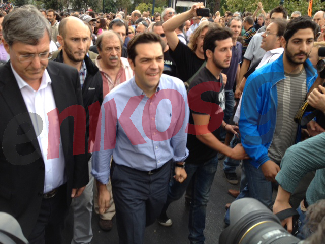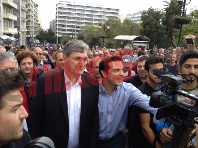 Ο Πρόεδρος του ΣΥΡΙΖΑ, Αλέξης Τσίπρας βρίσκεται αυτή την ώρα στο Σύνταγμα μαζί με τον κόσμο που έχει συγκεντρωθεί για να διαμαρτυρηθεί για την επίσκεψη της Γερμανίδας καγκελάριου Angela Merkel.