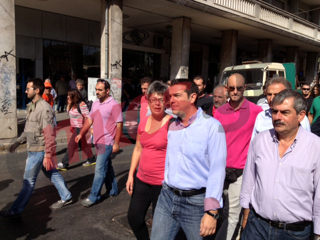 Ο πρόεδρος του ΣΥΡΙΖΑ Αλέξης Τσίπρας, χαμογελαστός κι ευδιάθετος, στην πορεία της ΓΣΕΕ-ΑΔΕΔΥ…