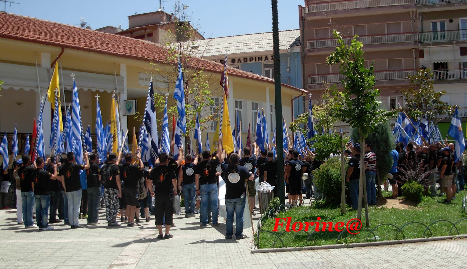 Εκατοντάδες πολίτες που δηλώνουν μέλη και φίλοι του Λαϊκού Συνδέσμου “Χρυσή Αυγή” και άλλων εθνικιστικών οργανώσεων από διάφορες περιοχές της Β.Ελλάδας, συγκεντρώθηκαν πριν από λίγο στην κεντρική πλατεία της Φλώρινας, μπροστά από τη Λέσχη Αξιωματικών.Αμέσως μετά έκαναν πορεία σε κεντρικούς δρόμους της πόλης και κατέληξαν στην πλατεία Γ.Μόδη όπου κατέθεσαν στεφάνι.