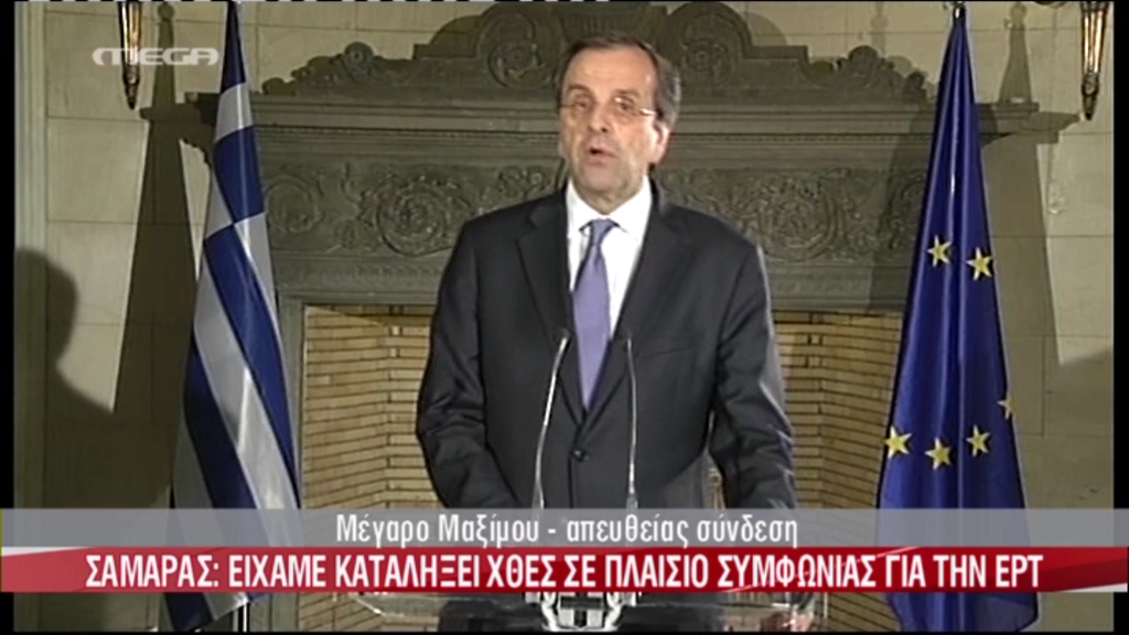 ΤΩΡΑ-Σαμαράς:Σήμερα ο κ. Κουβέλης επανήλθε στη θέση του να επαναλειτουργήσει η κατηργημένη ΕΡΤ