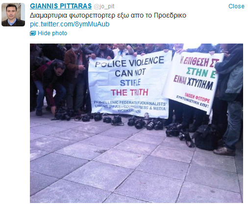 Πριν λίγο ο πρωθυπουργός, Λουκάς Παπαδήμος έγραψε στο twitter ότι η συνάντησή του με τον πρόεδρο της Δημοκρατίας είναι σε εξέλιξη.Την ίδια στιγμή ο πολιτικός συντάκτης του Alpha, Γιάννης Πιτταράς δημοσίευσε στο twitter μια φωτογραφία με φωτορεπόρτερ που διαμαρτύρονται έξω από το Προεδρικό Μέγαρο.