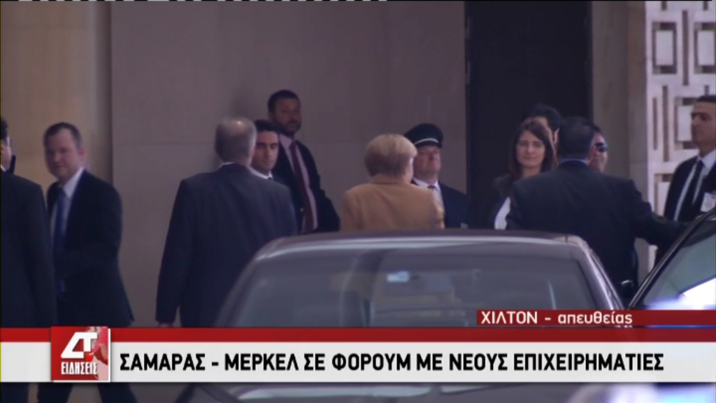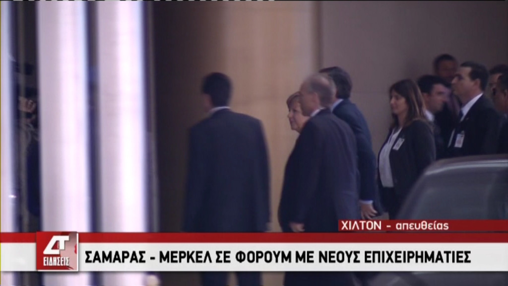 Στο ξενοδοχείο Χίλτον έφθασε η Γερμανίδα Καγκελάριος, Άνγκελα Μέρκελ και ο Πρωθυπουργός Αντώνης Σαμαράς, όπου θα συμμετάσχουν σε φόρουμ με νέους επαγγελματίες.