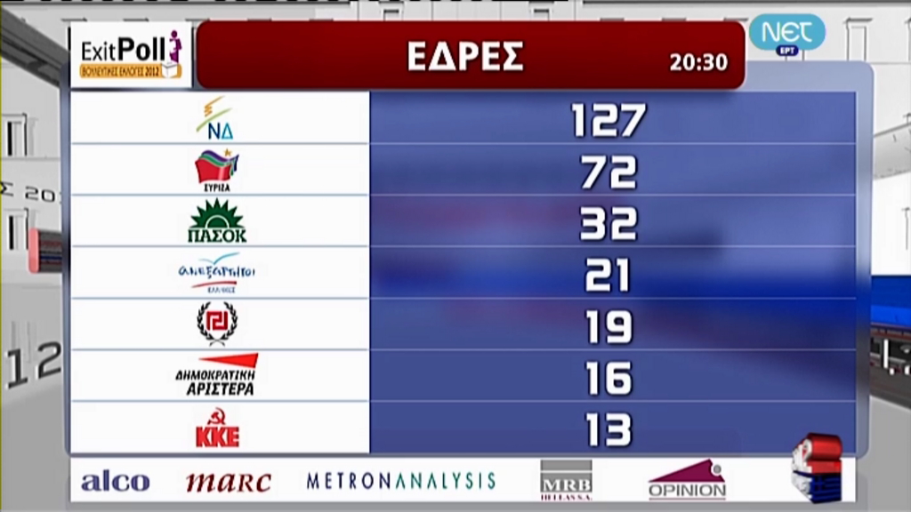 Αυτό είναι το τελικό κοινό exit poll. Αυτή είναι η κατανομή των εδρών σύμφωνα με την τελική πρόβλεψη.