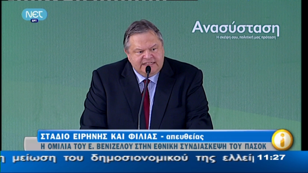 «Ξεκινάμε σήμερα, εδώ, την υπέρβαση, που είναι τώρα αναγκαία» δήλωσε ο Πρόεδρος του ΠΑΣΟΚ, Ευάγγελος Βενιζέλος, από το βήμα της Εθνικής Συνδιάσκεψης, ενώ τόνισε:«Το ΠΑΣΟΚ υπηρέτησε πάντα το εθνικό συμφέρον, αναλαμβάνοντας την πολιτική ευθύνη».