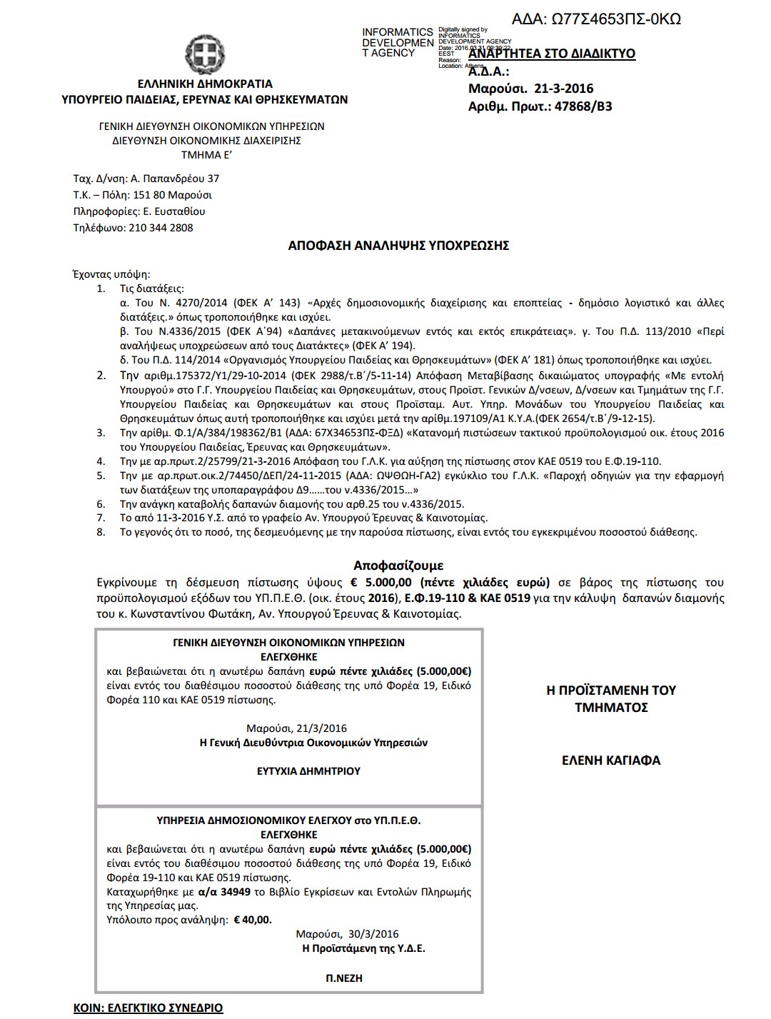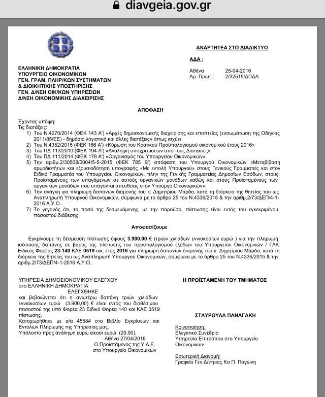 Όπως αναφέρουν τα έγγραφα για τον κ. Φωτάκη εγκρίθηκε κονδύλι 5.000 ευρώ, για τον κ. Σγουρίδη 7.000 ευρώ και για τον κ. Μάρδα 3.900 ευρώ.