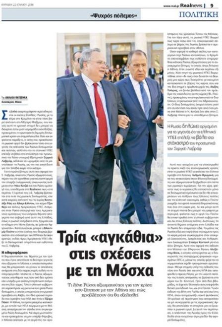 Όσο και αν φαίνεται παράξενο, οι αιτίες που προκάλεσαν τη ρωσική οργή δεν βρίσκονται τόσο στο γεγονός της απέλασης των Ρώσων διπλωματών και πολιτών, αλλά στο ότι το ελληνικό ΥΠΕΞ επέλεξε να βάλει στο στόχαστρό του προσωπικά τον Ρώσο υπουργό Εξωτερικών Σεργκέι Λαβρόφ, αλλά και να κρεμάσει «από τα μανταλάκια» τη Ρωσία, ως την πιο επικίνδυνη για την Ελλάδα χώρα στον κόσμο.