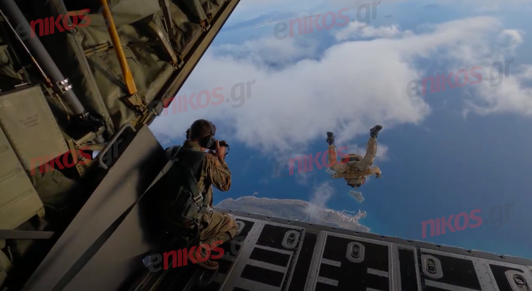 Στο βίντεο που δίνουν οι Αμερικανοί και δημοσιεύει σήμερα το enikos.gr, φαίνονται Αμερικανοί της SOF (Special Operation Forces) να προχωρούν σε άλματα από C-130 από κοινού με στελέχη των «Σκιών του Αιγαίου», της Διοίκησης Ειδικού Πολέμου του ΓΕΕΘΑ.