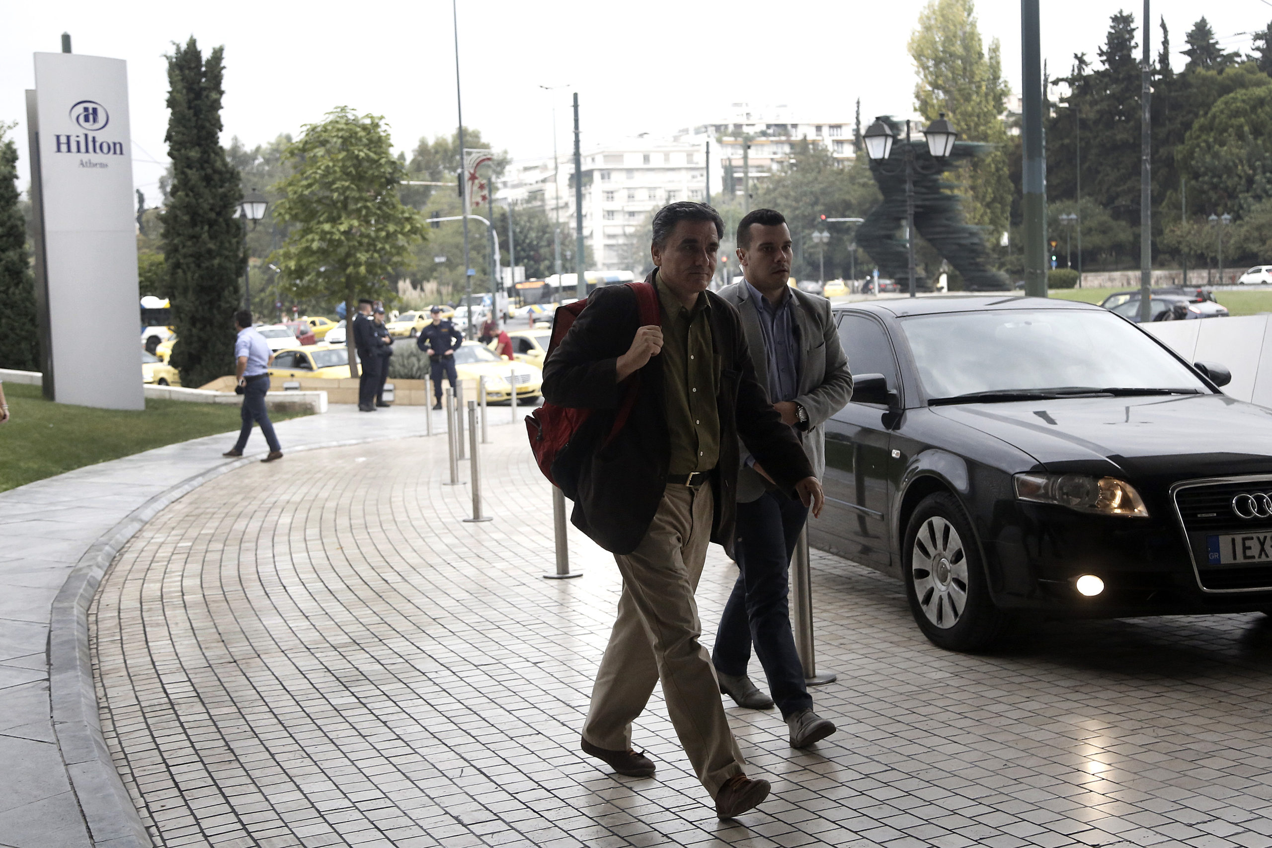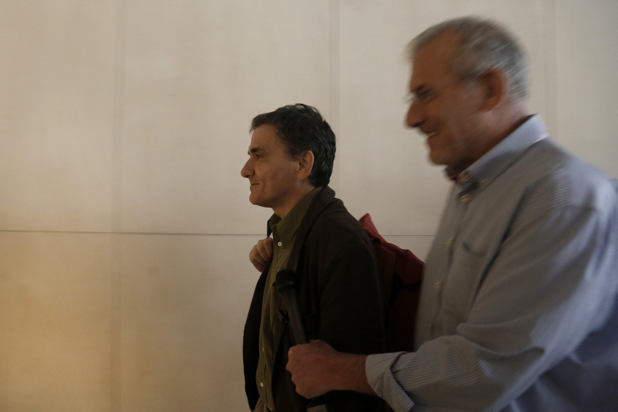 Ο υπουργός Οικονομικών, Ευκλείδης Τσακαλώτος και ο υπουργός Επικρατείας Αλέκος Φλαμπουράρης, προσήλθαν το πρωί σε κεντρικό ξενοδοχείο για την πρώτη συνάντηση με τους εκπροσώπους των Θεσμών, με αντικείμενο την πορεία υλοποίησης των προαπαιτούμενων για την εκταμίευση της υποδόσης των 2 δισ.ευρώ.