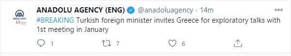 Πρόσκληση στην Ελλάδα για διερευνητικές επαφές απηύθυνε ο Τούρκος υπουργός Εξωτερικών, Μεβλούτ Τσαβούσογλου και μάλιστα κάνει λόγο για πρώτη συνάντηση εντός του Ιανουαρίου σύμφωνα με όσα μετέδωσε το πρακτορείο Anadolu.