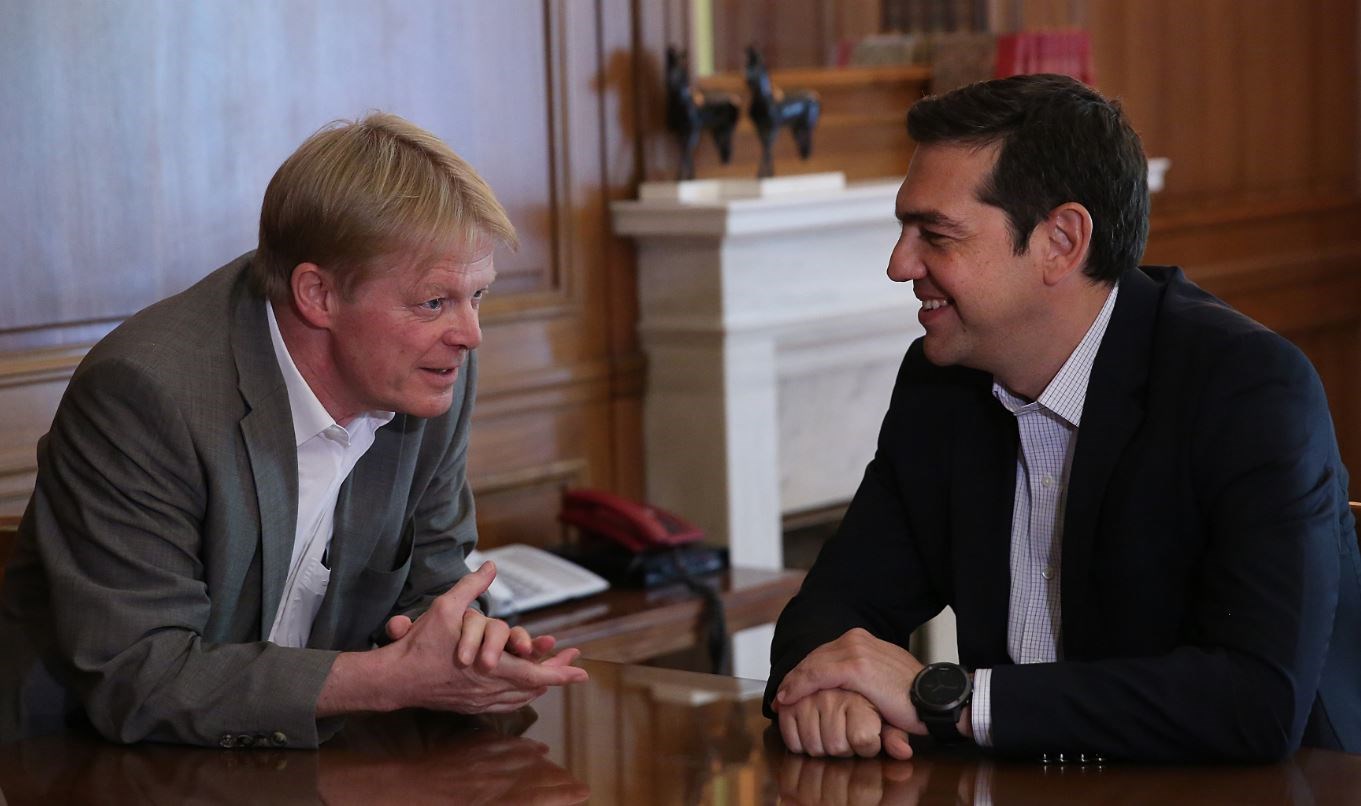 Η θετική πορεία της ελληνικής οικονομίας, τα εργασιακά δικαιώματα, η αποκατάσταση των συλλογικών διαπραγματεύσεων και η σημασία των πολιτικών που ενισχύουν την ανάπτυξη και την απασχόληση, συζητήθηκαν κατά τη συνάντηση του Πρωθυπουργού Αλέξη Τσίπρα με τον πρόεδρο της Γερμανικής Ομοσπονδίας Συνδικάτων (DGB), Ράινερ Χόφμαν, στο Μέγαρο Μαξίμου.