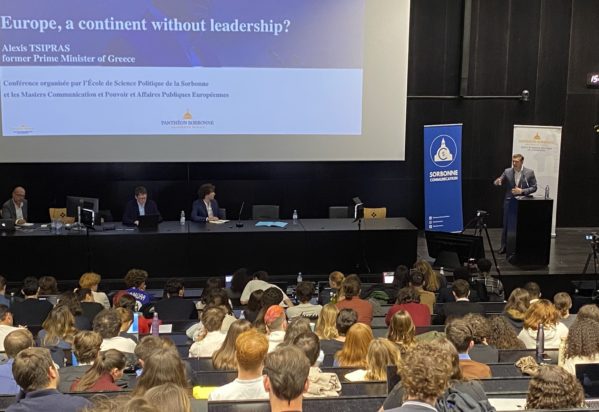 Προσκεκλημένος της σχολής Πολιτικών Επιστημών του Πανεπιστημίου της Σορβόννης και απευθυνόμενος σε ένα – στην πλειονότητά του γαλλικό – φοιτητικό κοινό, ο πρώην πρωθυπουργός έκανε λόγο για την ανάγκη μίας «προοδευτικής στροφής» τόσο στην Ευρώπη όσο και στην Ελλάδα.