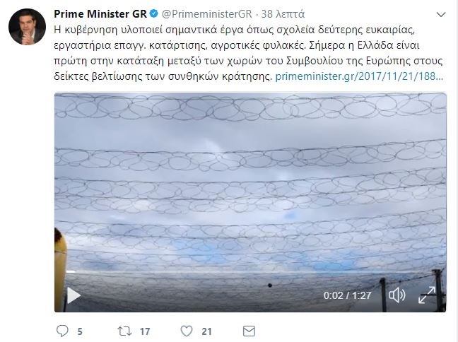 «Σήμερα η Ελλάδα είναι πρώτη στην κατάταξη μεταξύ των χωρών του Συμβουλίου της Ευρώπης στους δείκτες βελτίωσης των συνθηκών κράτησης» αναφέρει στην ανάρτησή του ο Αλέξης Τσίπρας, παραθέτοντας σύνδεσμο με την ιστοσελίδα του πρωθυπουργού όπου σημειώνονται αναλυτικά οι νομοθετικές παρεμβάσεις της κυβέρνησης.
