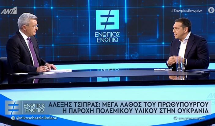 Αναφερόμενος στην αποστολή αμυντικής βοήθειας στην Ουκρανία με απόφαση του πρωθυπουργού, ο Αλέξης Τσίπρας τόνισε πως πρόκειται για «μέγα λάθος και επιπολαιότητα του κ. Μητσοτάκη η αποστολή πολεμικού υλικού στην Ουκρανία. Η χώρα μας που παραδοσιακά εμπλέκεται με την Ειρήνη, τώρα εμπλέκεται με τον πόλεμο».