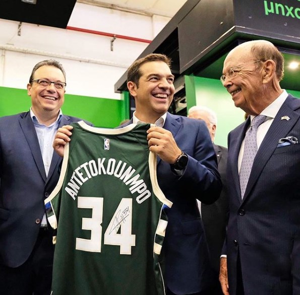 Ο πρόεδρος του ΣΥΡΙΖΑ, αγαπά τον αθλητισμό και ιδιαίτερα το μπάσκετ και έτσι έχει φροντίσει να αναρτήσει δύο φωτογραφίες με την μπλούζα του Γιάννη Αντετοκούνμπο.