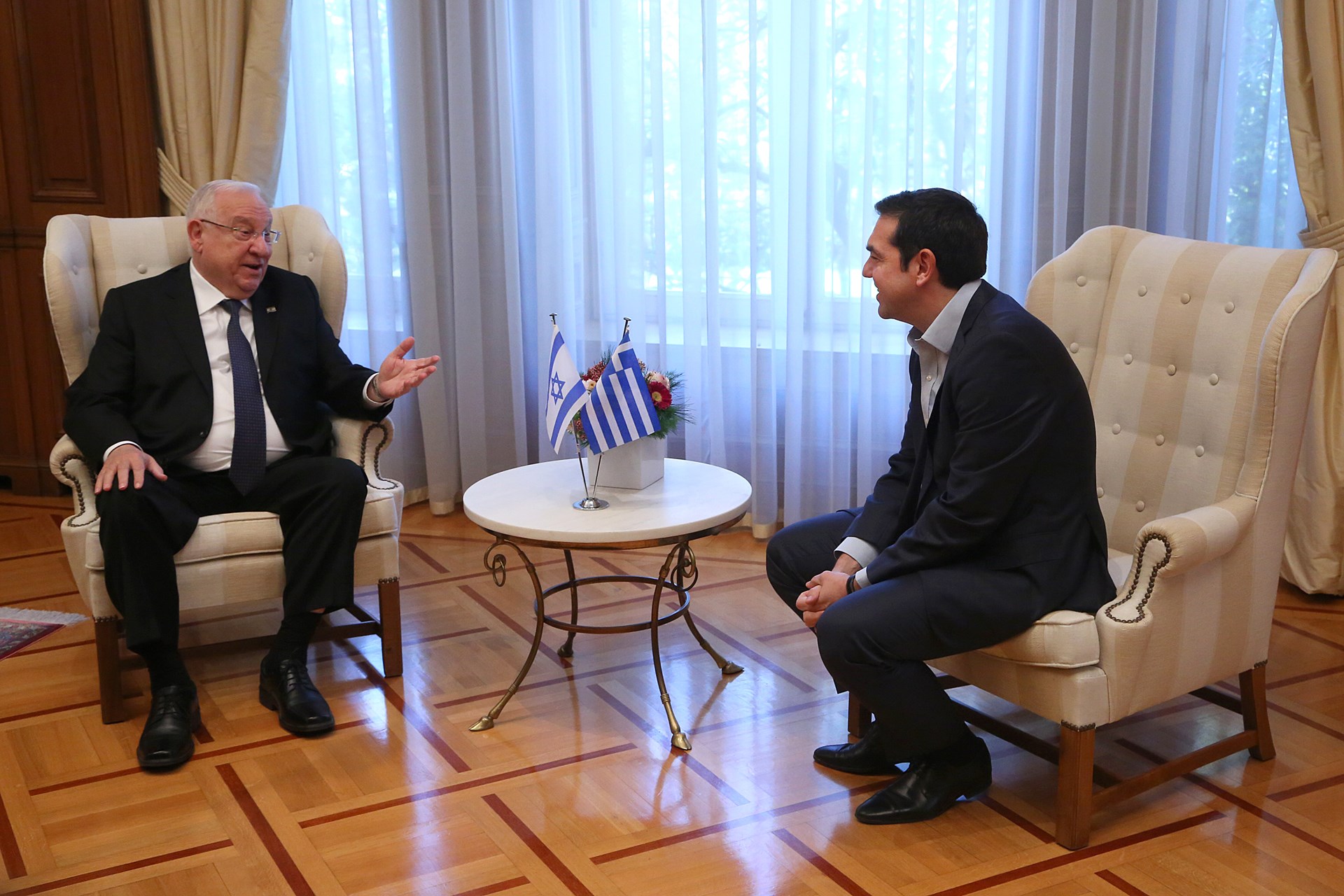 «Έρχεστε σε μια συμβολική στιγμή», είπε ο πρωθυπουργός στον Ισραηλινό Πρόεδρο Ρούβεν Ρίβλιν κατά την υποδοχή του δεύτερου στο Μέγαρο Μαξίμου, καθώς «πριν δυο ημέρες ήταν η Διεθνής Ημέρα Ολοκαυτώματος». «Η ελληνική εβραϊκή κοινότητα υπέφερε πολλά κατά τη διάρκεια του Β’ Παγκοσμίου Πολέμου», είπε ακόμη ο Αλέξης Τσίπρας.