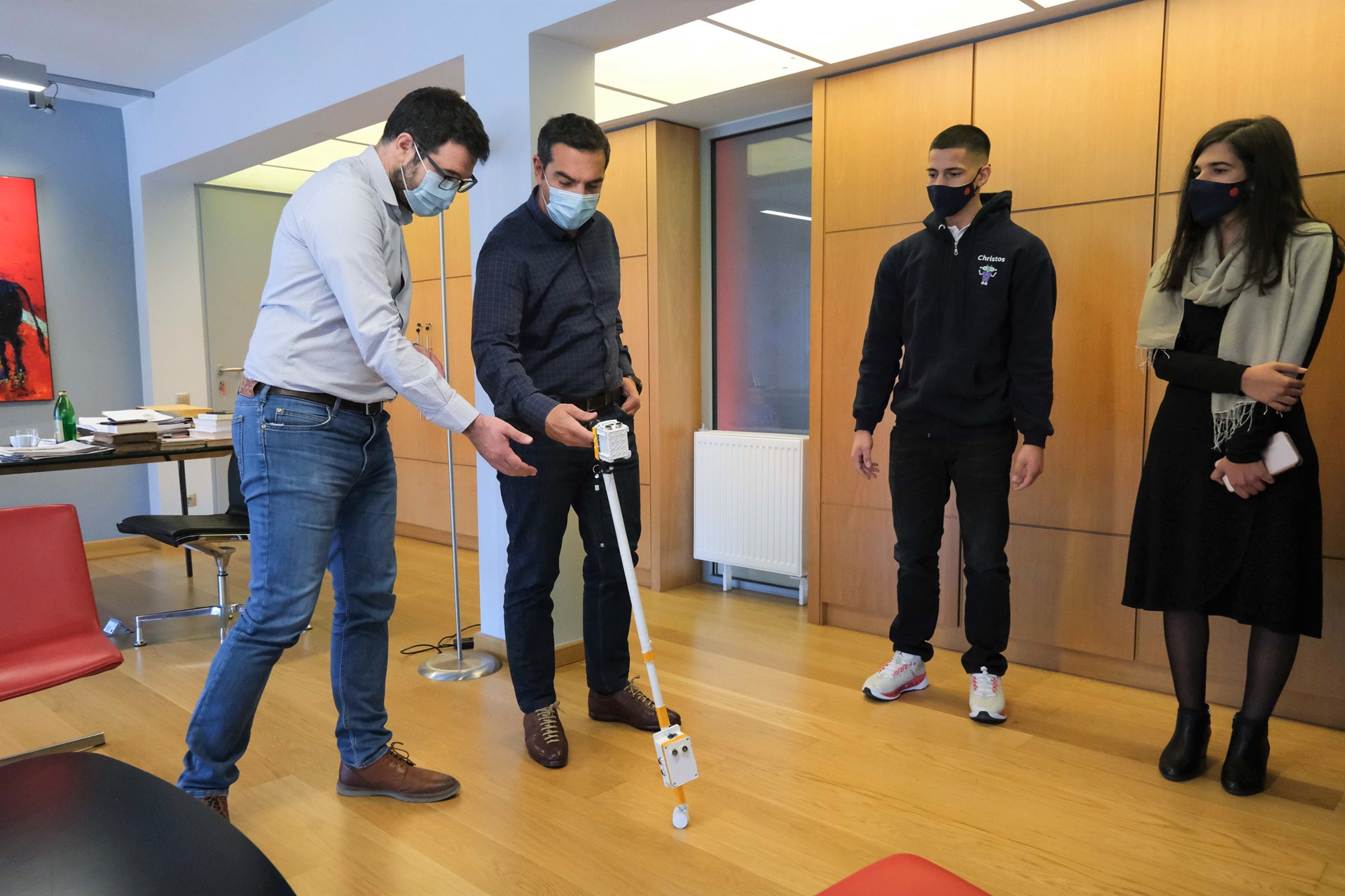 Το μπαστούνι που κατασκεύασαν οι μαθητές ενημερώνει τον χρήστη του για εμπόδια και επικοινωνεί με τα φανάρια, προκειμένου να ειδοποιεί εάν είναι πράσινα για να μπορούν να προχωρήσουν, ενώ διαθέτει και εφαρμογή εντοπισμού.