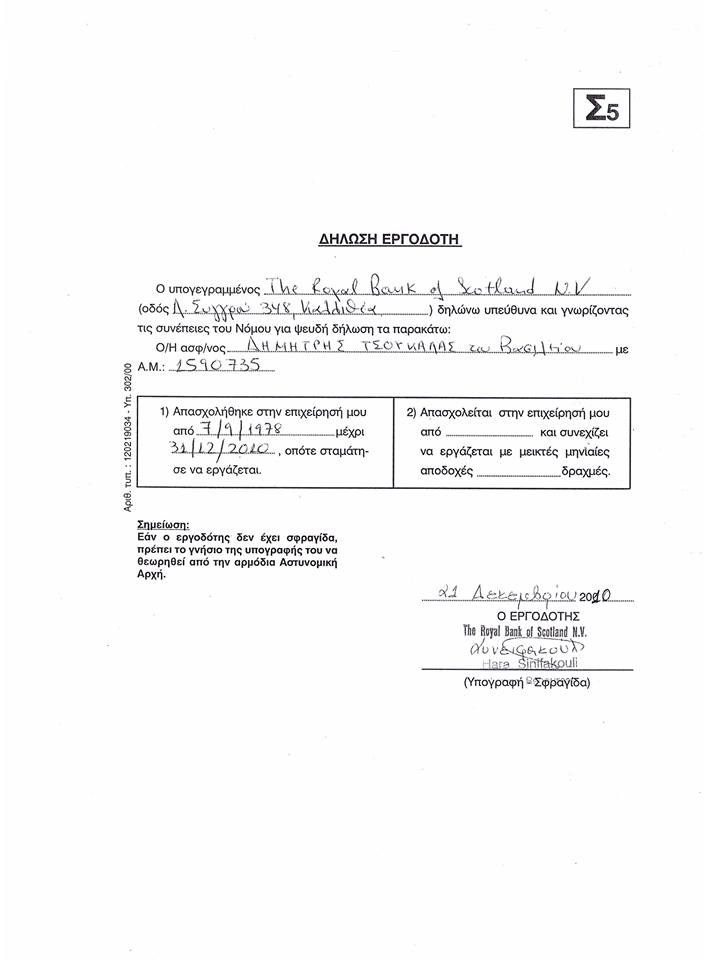2. Την από 21-12-2010 Δήλωση Εργοδότη (RBS), από την οποία προκύπτει ότι η σχέση εργασίας μου έληξε την 31η/12/2010.