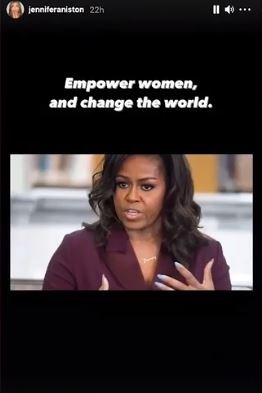 “Ενώ ο κόσμος αποσπάται από τον θόρυβο εκείνων που είναι ανθεκτικοί στην αλλαγή… η αλλαγή έχει γίνει ούτως ή άλλως… Ενδυνάμωση των γυναικών και αλλαγή του κόσμου” έγραψε η Άνιστον και μοιράστηκε φωτό μεταξύ άλλων της Μισέλ Ομπάμα, της Γκρέτα Τούνμπεργκ, της Κάμαλα Χάρις, της Άνγκελα Μέρκελ, της Νίκολα Στέρτζον, της Γιασίντα Άρντεν αλλά και της Κατερίνας Σακελλαροπούλου.