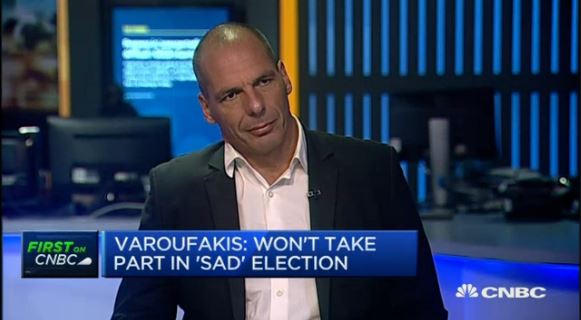 “Δεν συμμετέχω σε θλιβερές εκλογές”, είπε. “Ούτε ο Τσίπρας πιστεύει σε αυτό το πρόγραμμα. Κανένα κόμμα στην Ελλάδα, ούτε ο ΣΥΡΙΖΑ, μπορεί να εφαρμόσει αυτή τη συμφωνία, να εφαρμόσει δηλαδή μια μεταρρυθμιστική και δημοσιονομική ατζέντα που δεν είναι ικανή να σταθεροποιήσει την οικονομία”.