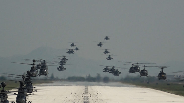 Πάνω από 40 ινδιάνοι του Αιγαίου “KIOWA Warrior” OH-58D, Apache AH-64 και Huey UH-1H απογειώθηκαν ταυτόχρονα καταρρίπτοντας το προηγούμενο ρεκόρ που είχε κάνει η 1η ΤΑΞΑΣ με 27 ελικόπτερα πριν από 2 χρόνια.