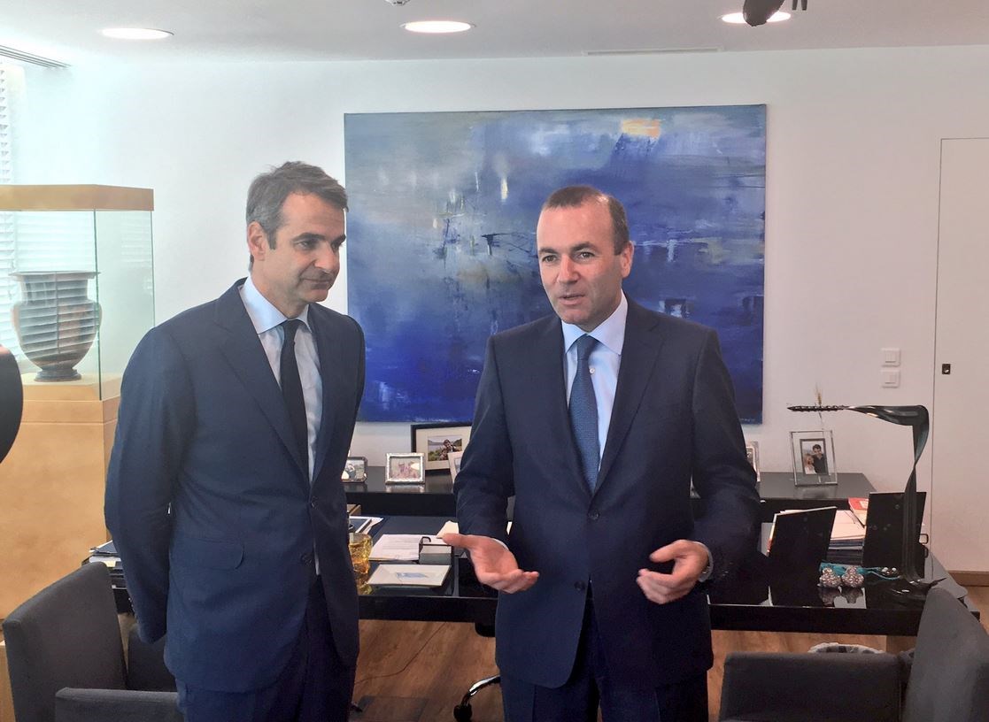Κ. Μητσοτάκης: «Υποδεχόμαστε, σήμερα, στα γραφεία της Νέας Δημοκρατίας, τον κ. Weber, επικεφαλής της ευρω-ομάδας του Ευρωπαϊκού Λαϊκού Κόμματος στο Ευρωκοινοβούλιο. Ένας άνθρωπος ο οποίος γνωρίζει πολύ καλά τα προβλήματα της Ελλάδος και με τον οποίο έχω συζητήσει πολλές φορές, με ειλικρίνεια, για τις προκλήσεις που αντιμετωπίζει η χώρα μας.