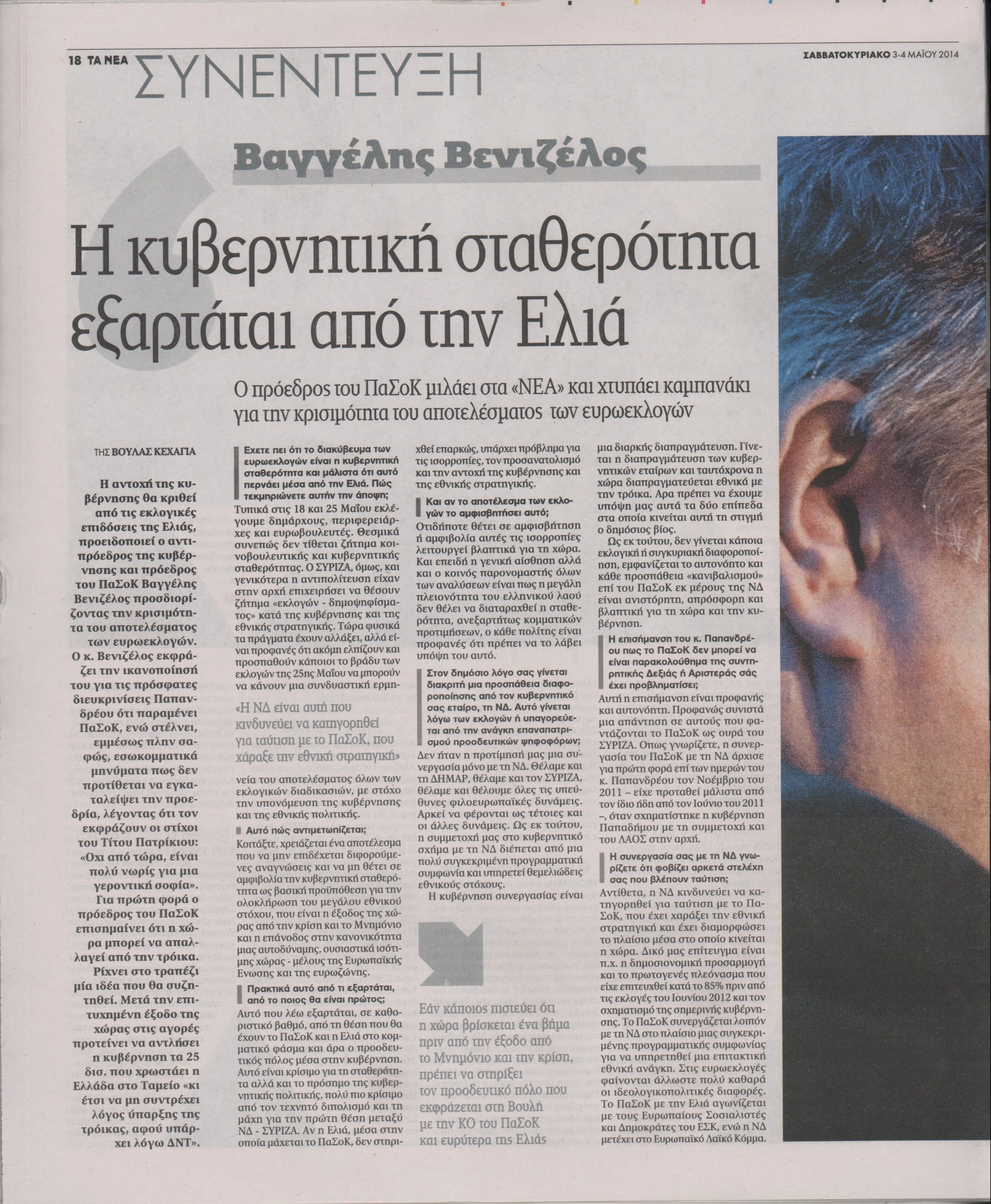 Πατήστε πάνω στις φωτογραφίες για να διαβάσετε τη συνέντευξη του Ευάγγελου Βενιζέλου