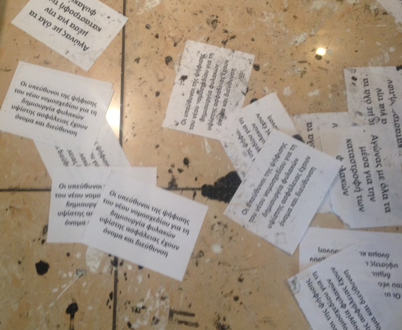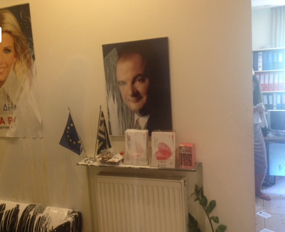 Άγνωστοι εισέβαλαν, πετώντας μπογιές, στα γραφεία της Έλενας Ράπτη που βρίσκονται στο κέντρο της Θεσσαλονίκης, στην περιοχή της Καμάρας, πριν από μία ώρα.