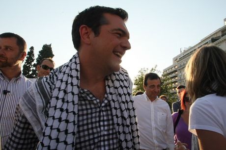 Φορώντας την παλαιστινιακή μαντήλα, έδωσε το «παρών» στην πορεία αλληλεγγύης για το λαό της Παλαιστίνης στο Σύνταγμα ο πρόεδρος του ΣΥΡΙΖΑ, Αλέξης Τσίπρας.