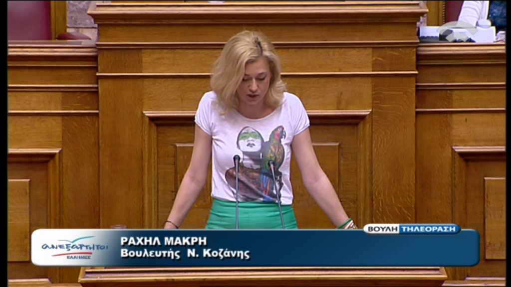 Με καλοκαιρινή ενδυματολογική διάθεση ανέβηκε στο βήμα της Βουλής η Ραχήλ Μακρή των Ανεξάρτητων Ελλήνων, κάτι που ανάγκασε τον Γιώργο Καλαντζή, ο οποίος προήδρευε, να προχωρήσει σε συστάσεις και να αναφέρει πως «πρέπει να είμαστε ιδιαίτερα προσεκτικοί τώρα που έχουμε… θέρος».