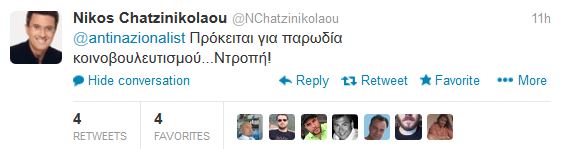 Το συγκεκριμένο περιστατικό σχολίασε και ο Νίκος Χατζηνικολάου στο twitter: