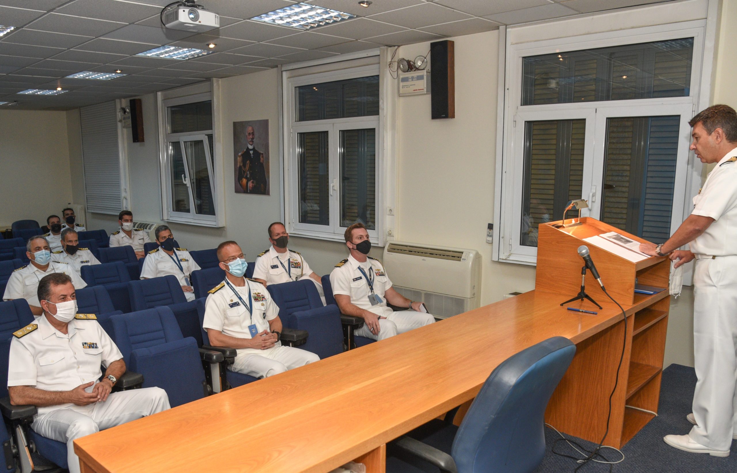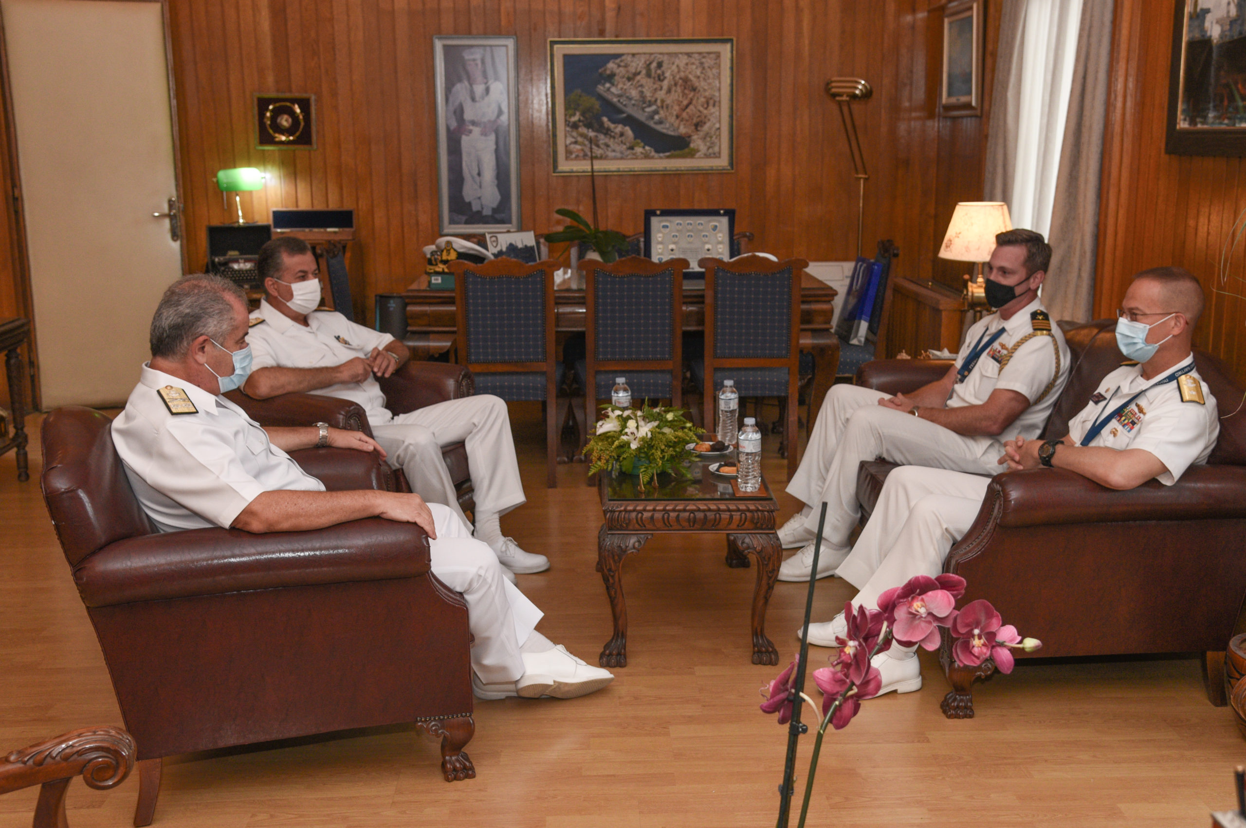 Κατά την επίσκεψή του στο ΓΕΝ τον υποδέχθηκε ο Υπαρχηγός ΓΕΝ Υποναύαρχος Γεώργιος Καμπουράκης, ενώ ενημερώθηκε από επιτελείς για τις επιχειρησιακές δραστηριότητες των μονάδων του Πολεμικού Ναυτικού.