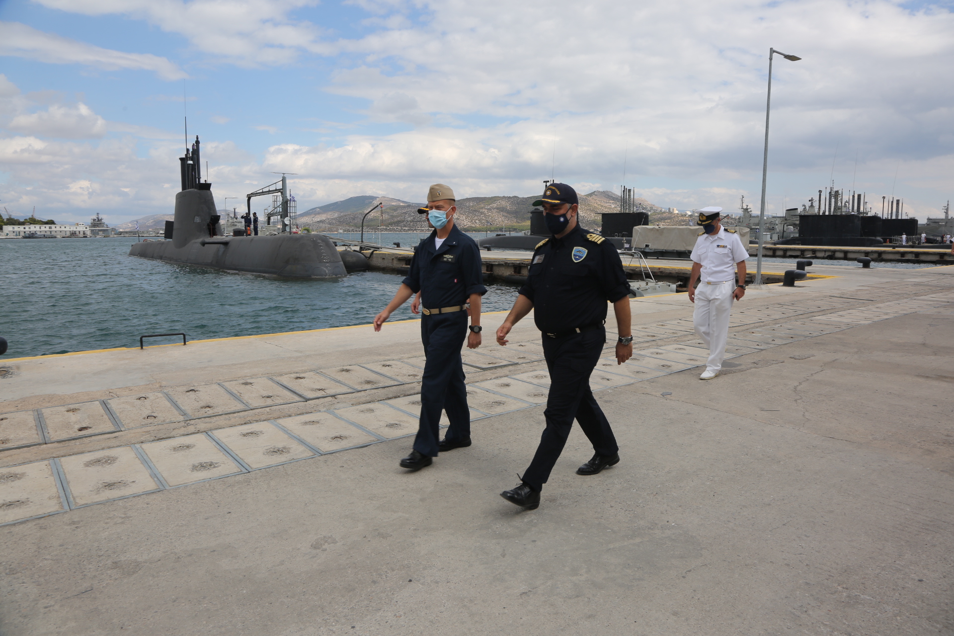 Επιπρόσθετα, ξεναγήθηκε στις εγκαταστάσεις της Διοίκησης και της Σχολής Υποβρυχίων ενώ τελικά επιβιβάσθηκε στο υποβρύχιο «ΚΑΤΣΩΝΗΣ», στο πλαίσιο άσκησης “ΠΕΡΙΣΚΟΠΙΟ”. Πρόκειται για το ένα από τα 4 υποβρύχια κλάσης «ΠΑΠΑΝΙΚΟΛΗΣ» type 214, που διαθέτει το Πολεμικό Ναυτικό, και που παρόμοια ναυπηγεί και η Τουρκία, κατόπιν παραχώρησης των σχετικών αδειών από την Γερμανία.