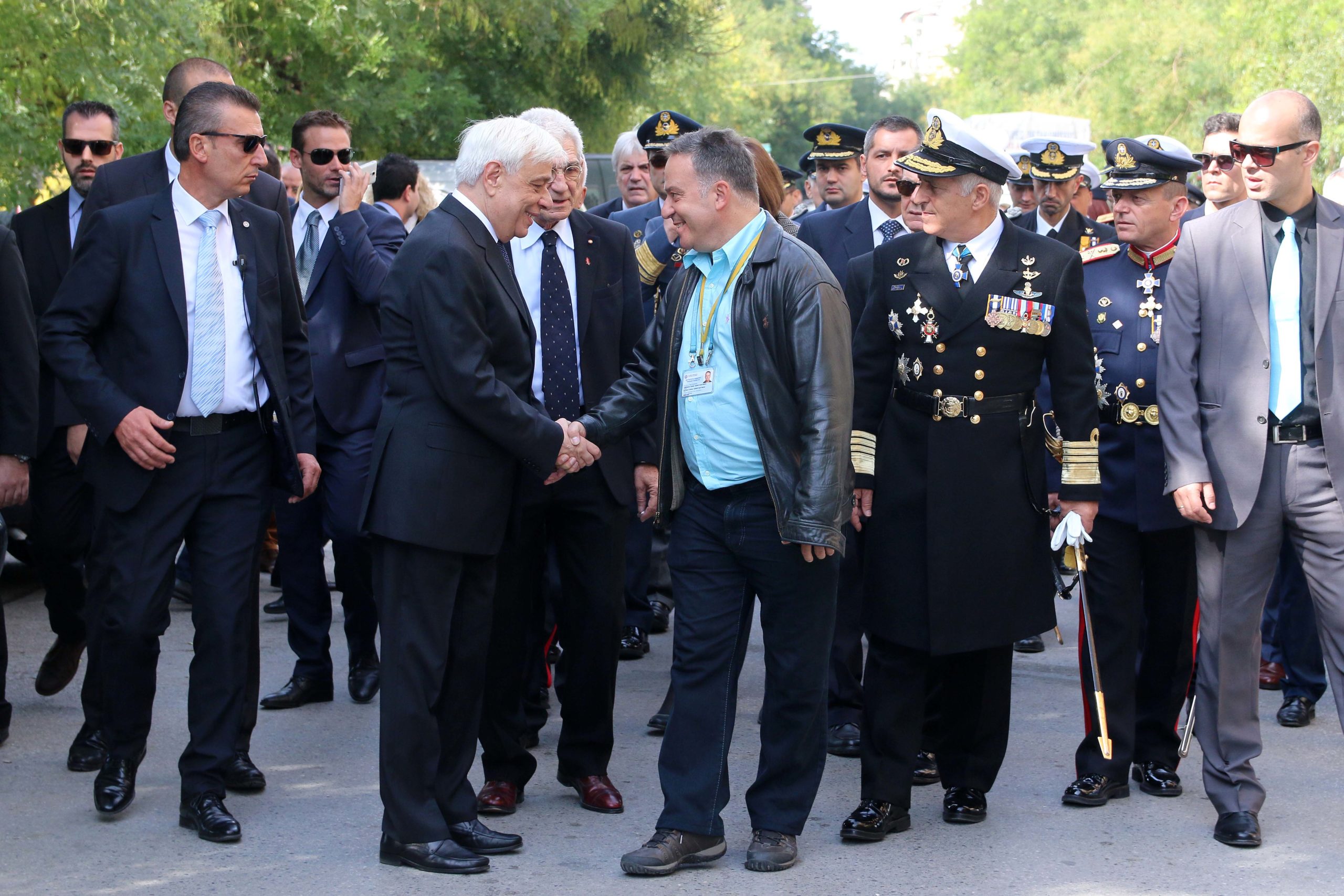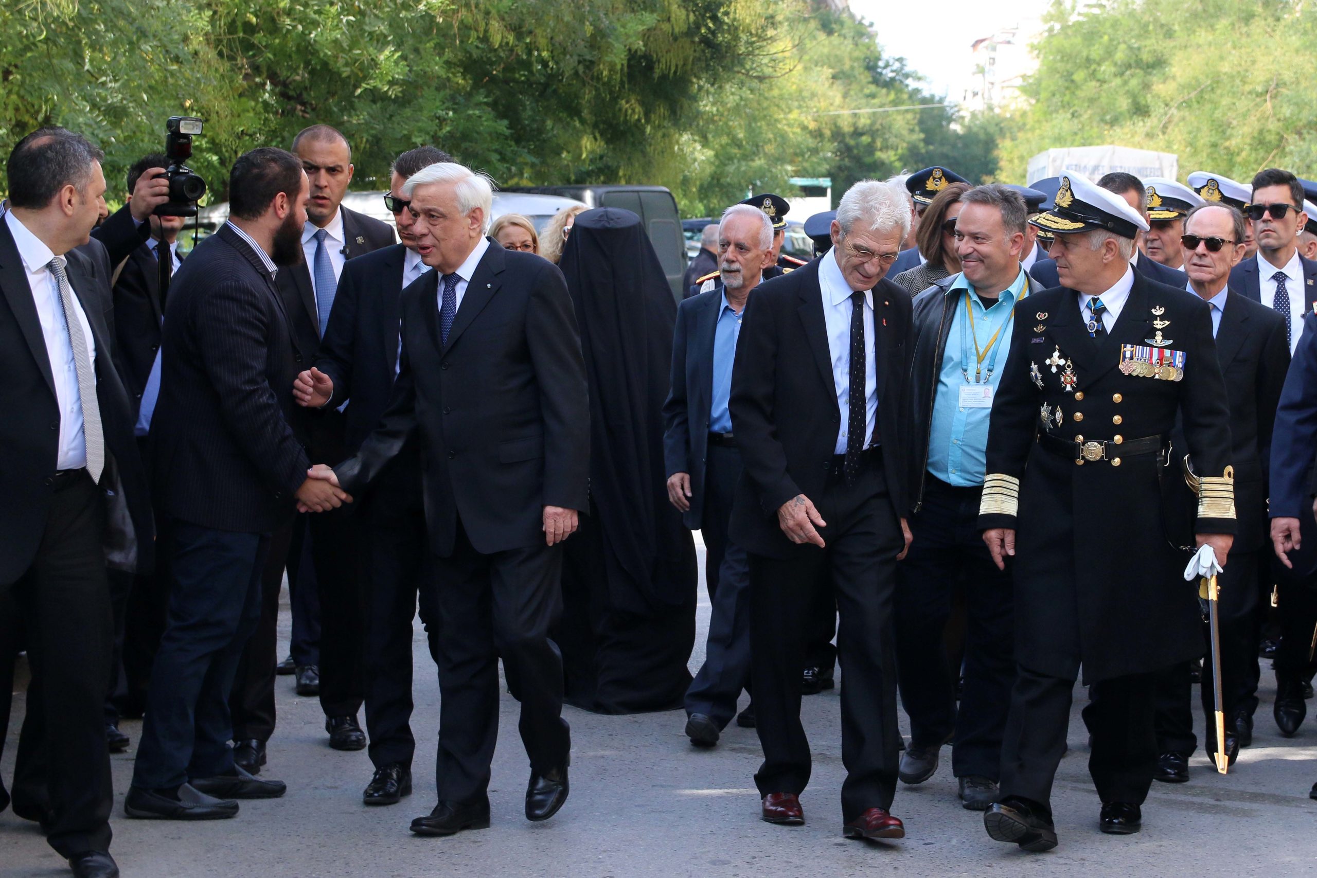 Μετά το τέλος της δοξολογίας για την εορτή του Πολιούχου της Θεσσαλονίκης Αγίου Δημητρίου και την Επέτειο της απελευθέρωσης της Θεσσαλονίκης και της 28ης Οκτωβρίου ο Πρόεδρος της Δημοκρατίας, Προκόπης Παυλόπουλος, κατευθύνθηκε πεζός στην πλατεία Αριστοτέλους, όπου απόλαυσε τον καφέ του σε κεντρικό κατάστημα.