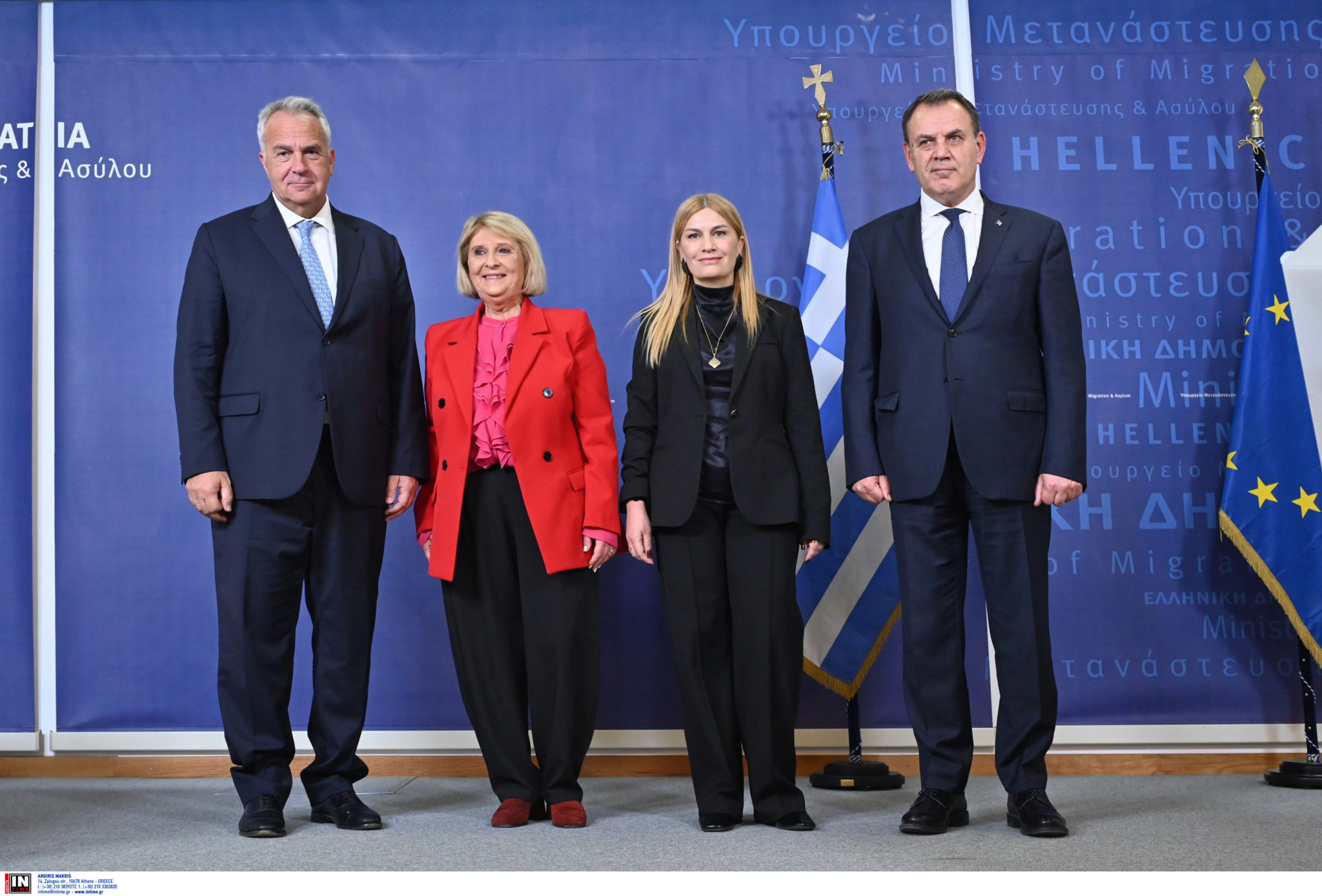 Ολοκληρώθηκε στο υπουργείο Μετανάστευσης και Ασύλου η τελετή παράδοσης-παραλαβής ανάμεσα στον νέο υπουργό, Μάκη Βορίδη και τον απερχόμενο Νίκο Παναγιωτόπουλο, αλλά και τη νέα υφυπουργό Σέβη Βολουδάκη και την απερχόμενη Σοφία Βούλτεψη.