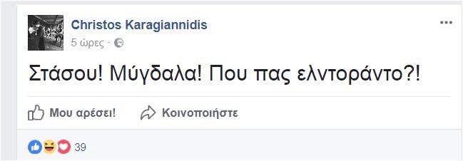 “Στάσου! Μύγδαλα! Πού πας ελντοράντο?!”, έγραψε σε ειρωνικό τόνο ο κ. Καραγιαννίδης.