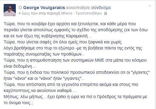 Μετά την απόρριψη της αγωγής του Δημοσίου κατά της μονής Βατοπαιδίου ο πρώην υπουργός της ΝΔ έκανε μια ανάρτηση στην προσωπική του σελίδα στο Facebook όπου καλεί τον Κώστα Καραμανλή να πει τα πράγματα με το όνομά τους.
