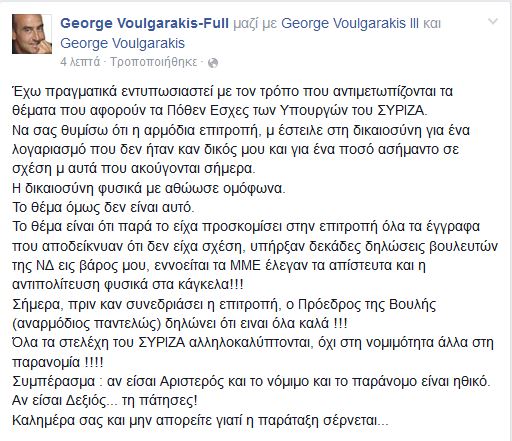 Ο πρώην υπουργός της Νέας Δημοκρατίας έγραψε στον προσωπικό του λογαριασμό στο Facebook:
