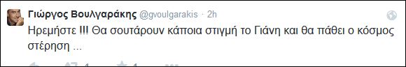Ο Γιώργος Βουλγαράκης έκανε ένα σχόλιο στο Τwitter για τον υπουργό Οικονομικών Γιάνη Βαρουφάκη. Συγκεκριμένα έγραψε: