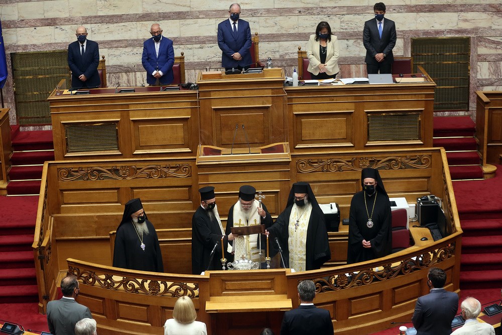 Με περιορισμένο αριθμό βουλευτών, λόγω των προληπτικών μέτρων για την αντιμετώπιση της πανδημίας του κορονοϊού που έχει εφαρμόσει η Βουλή, τελέστηκε από τον Αρχιεπίσκοπο Ιερώνυμο και ολιγομελή αντιπροσωπεία μελών της Διαρκούς Ιεράς Συνόδου, ο καθιερωμένος αγιασμός για την έναρξη των εργασιών της Ολομέλειας της νέας κοινοβουλευτικής περιόδου.