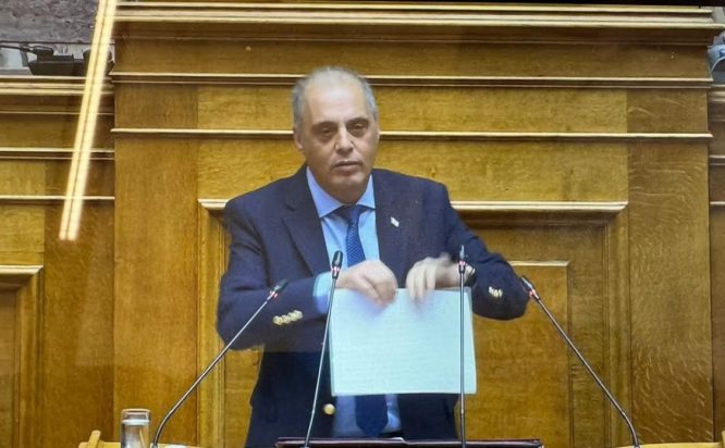 Σε αυτό το σημείο, ο πρόεδρος της Ελληνικής Λύσης προχώρησε σε μία πρωτοφανή κίνηση και έσκισε το κείμενο της Συμφωνίας των Πρεσπών από το βήμα της Βουλής.