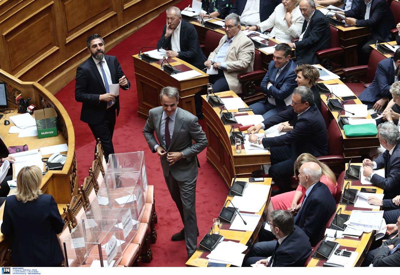 Ο κ. Μητσοτάκης σηκώθηκε από τη θέση του και πήγε στα έδρανα του ΣΥΡΙΖΑ, χαιρετώντας τον κ. Φάμελλο, ο οποίος ως νέος επικεφαλής της Κ.Ο. του ΣΥΡΙΖΑ, κάθεται στη θέση που καθόταν ο Αλέξης Τσίπρας. Ο κ. Τσίπρας κάθεται στις πρώτες θέσεις των βουλευτικών εδράνων του ΣΥΡΙΖΑ, αλλά δίπλα από την Όλγα Γεροβασίλη, που πλέον είναι αντιπρόεδρος της Βουλής.