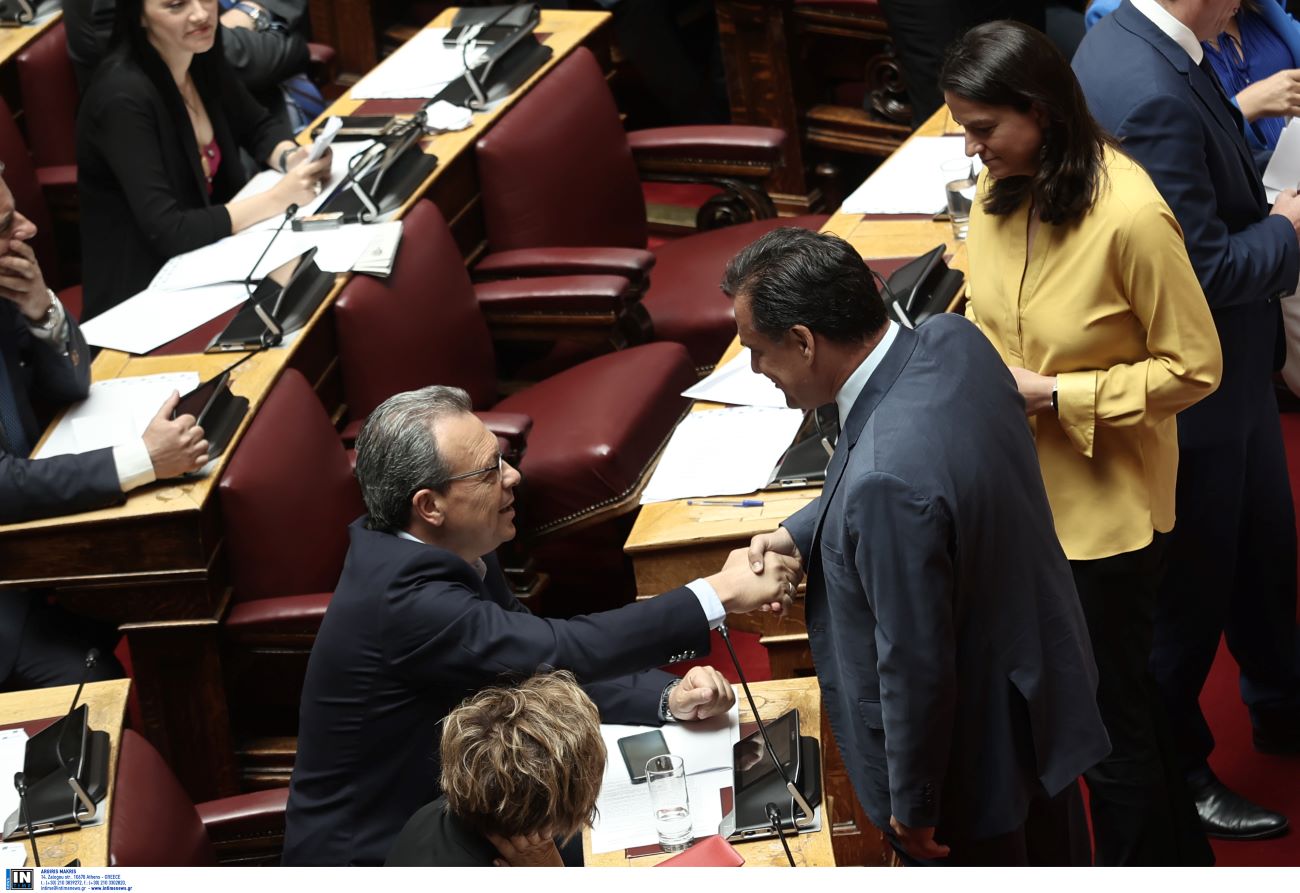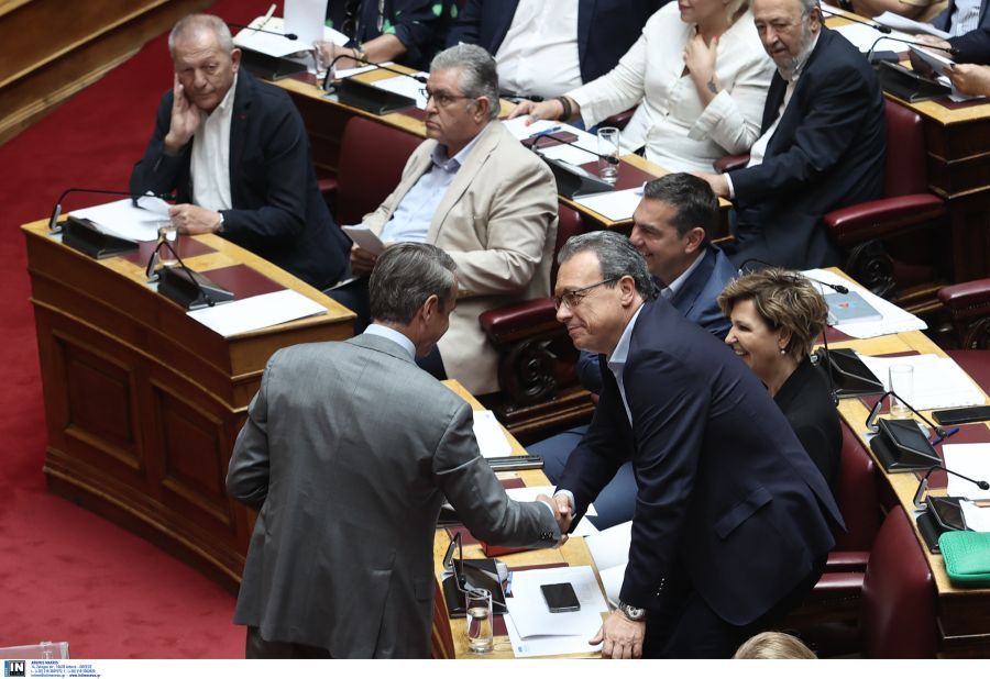 Μία θερμή χειραψία αντήλλαξαν ο Πρωθυπουργός Κυριάκος Μητσοτάκης και ο επικεφαλής της ΚΟ του ΣΥΡΙΖΑ Σωκράτης Φάμελλος, αμέσως μετά το τέλος της ψηφοφορίας για την εκλογή του Κωνσταντίνου Τασούλα στη θέση του προέδρου της νέας Βουλής.
